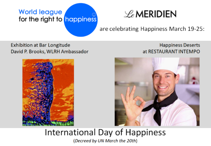 - Operation Happiness Menu with famous Chefs (Monaco, USA East Coast/ West Coast and Canada in 2018) to draw attention to dietetics influencing the performance of neurotransmitters of happiness in our brain,